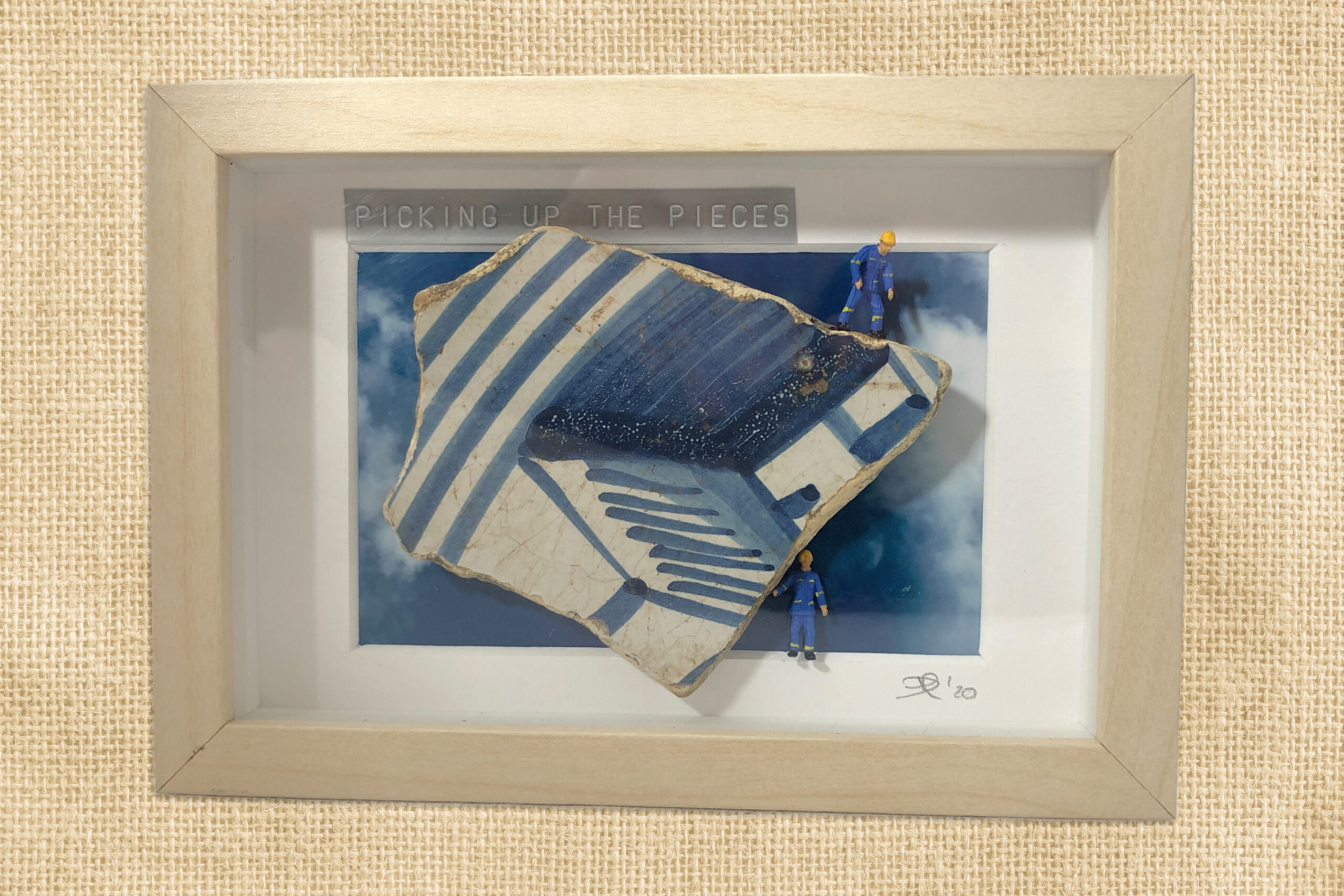 Lijstje met twee figuurtjes die aan het werk zijn met een scherf, hoe gaan ze dit aanpakken?